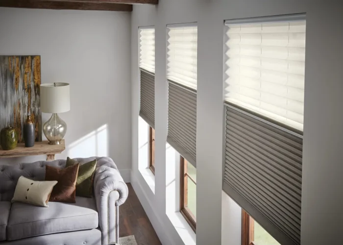 Shades: Roller shades, Roman folds, cellular (honeycomb) insulated models, and woven wood/textile shades—offering design, insulation and light‑control.