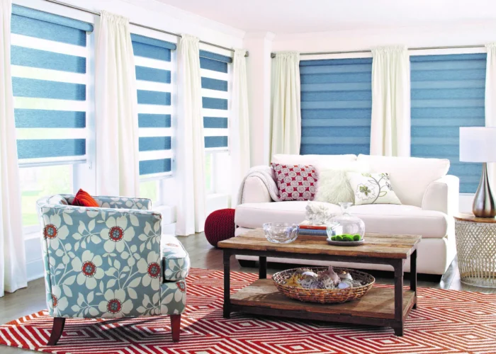 Shades: Roller, Roman, cellular (honeycomb), and woven fabric shades that bring texture, light‑control, and energy benefits.